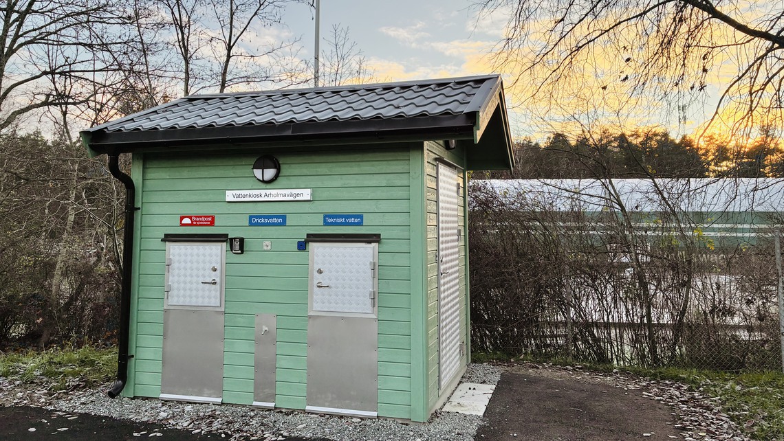 På Arholmavägen i Enebyberg har Danderyds fjärde vattenkiosk precis färdigställts. Syftet med vattenkioskerna är att säkerställa tillgång till vatten i alla lägen för både invånare och företag. Platserna är väl utvalda så att det ska vara lätt att komma åt vattnet året om och placerade i respektive kommundel.