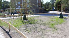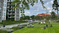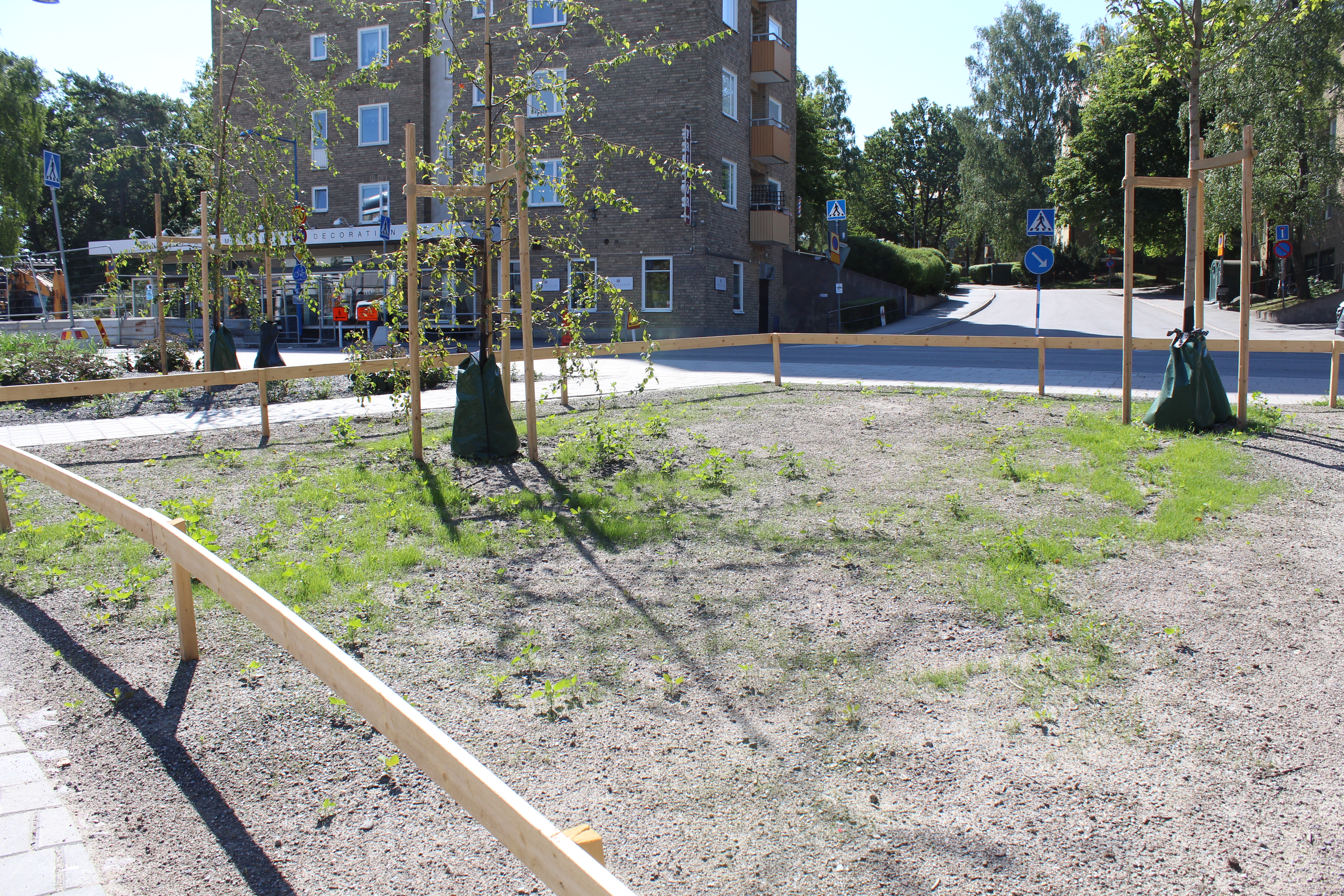 Genom parken går en lång perennplantering som fungerar som ett dike dit vattenmängder efter skyfall hamnar och sakta tas omhand av växterna.