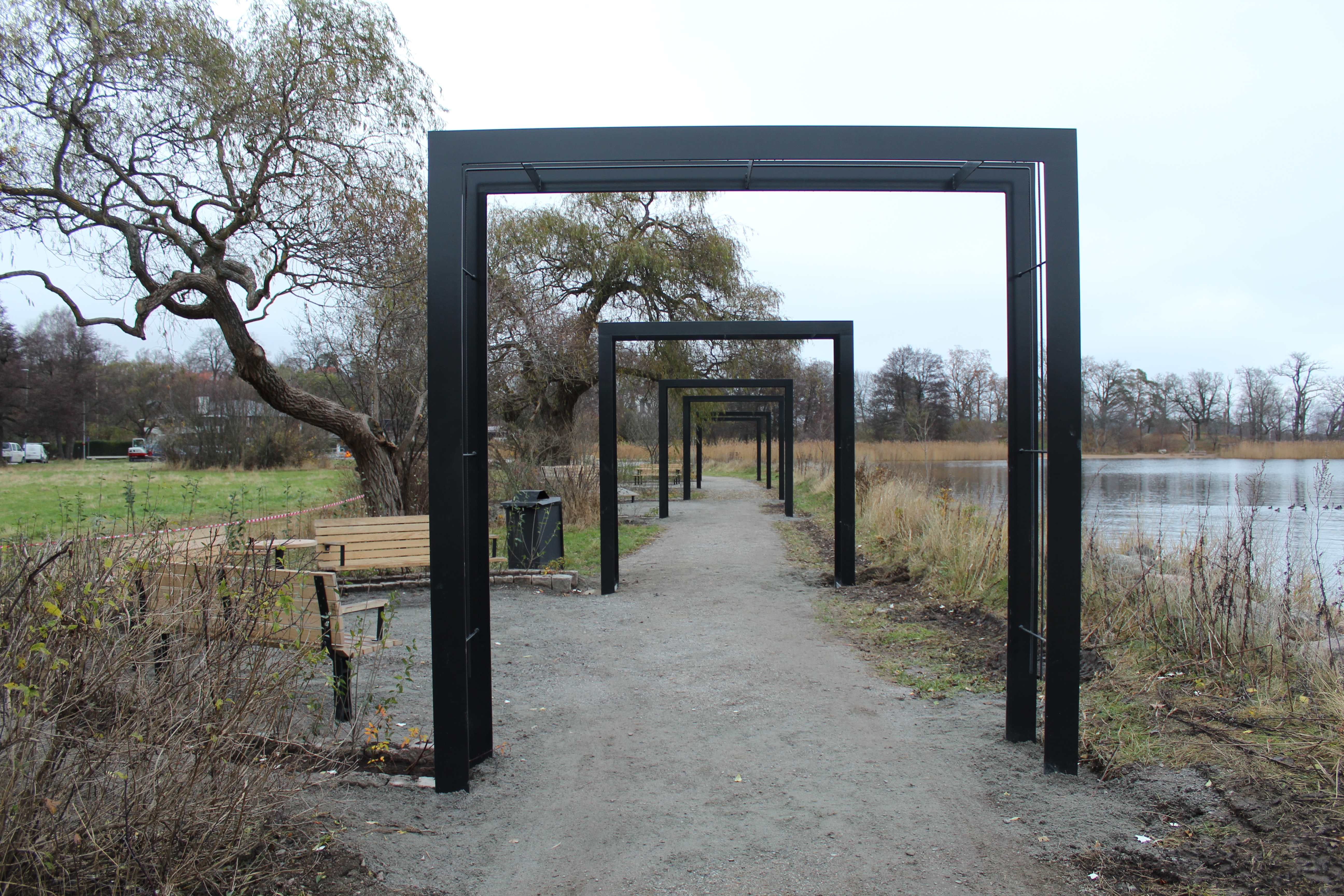 Trädbeståndet har kompletterats med almar resistenta mot almsjukan samt pilar.