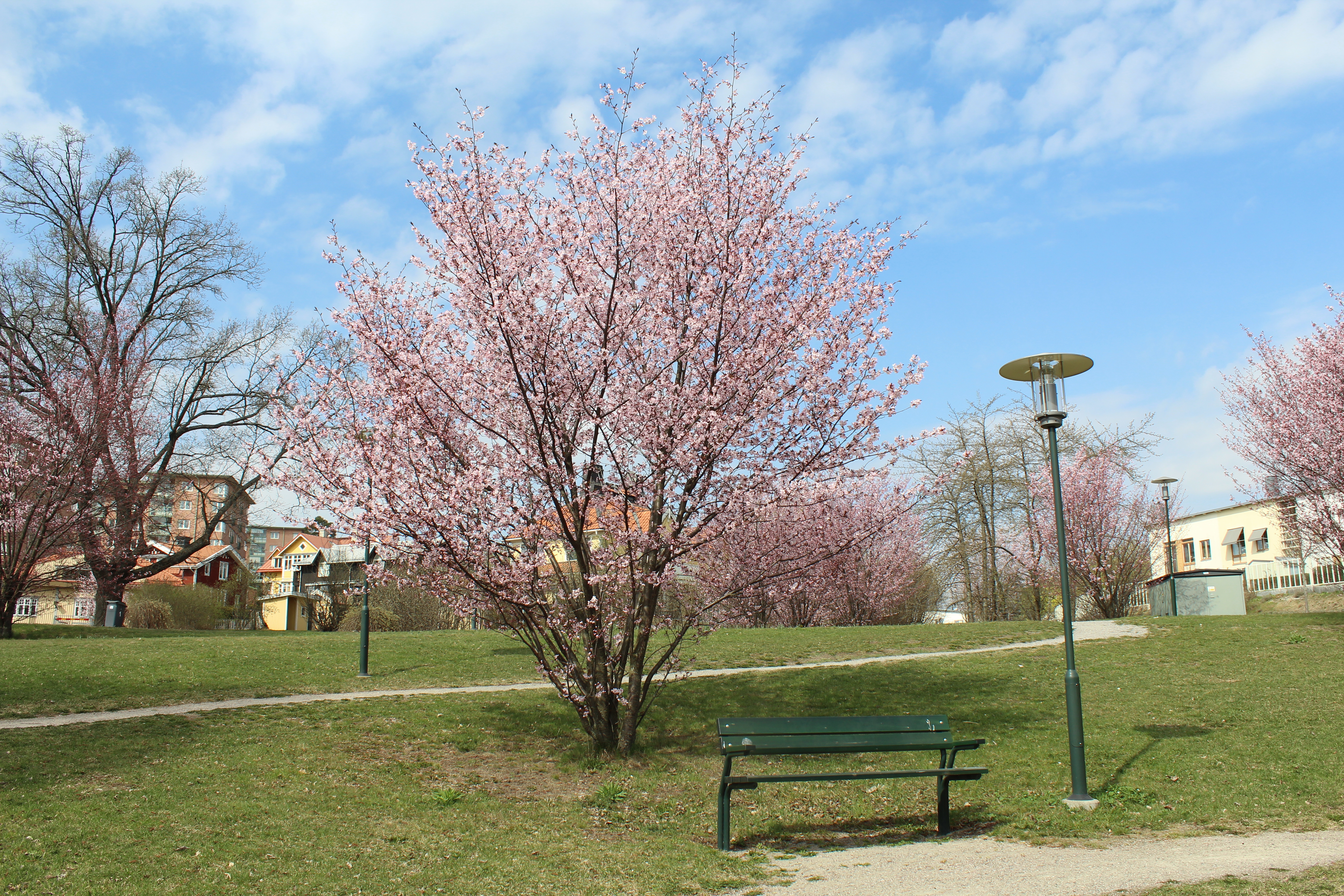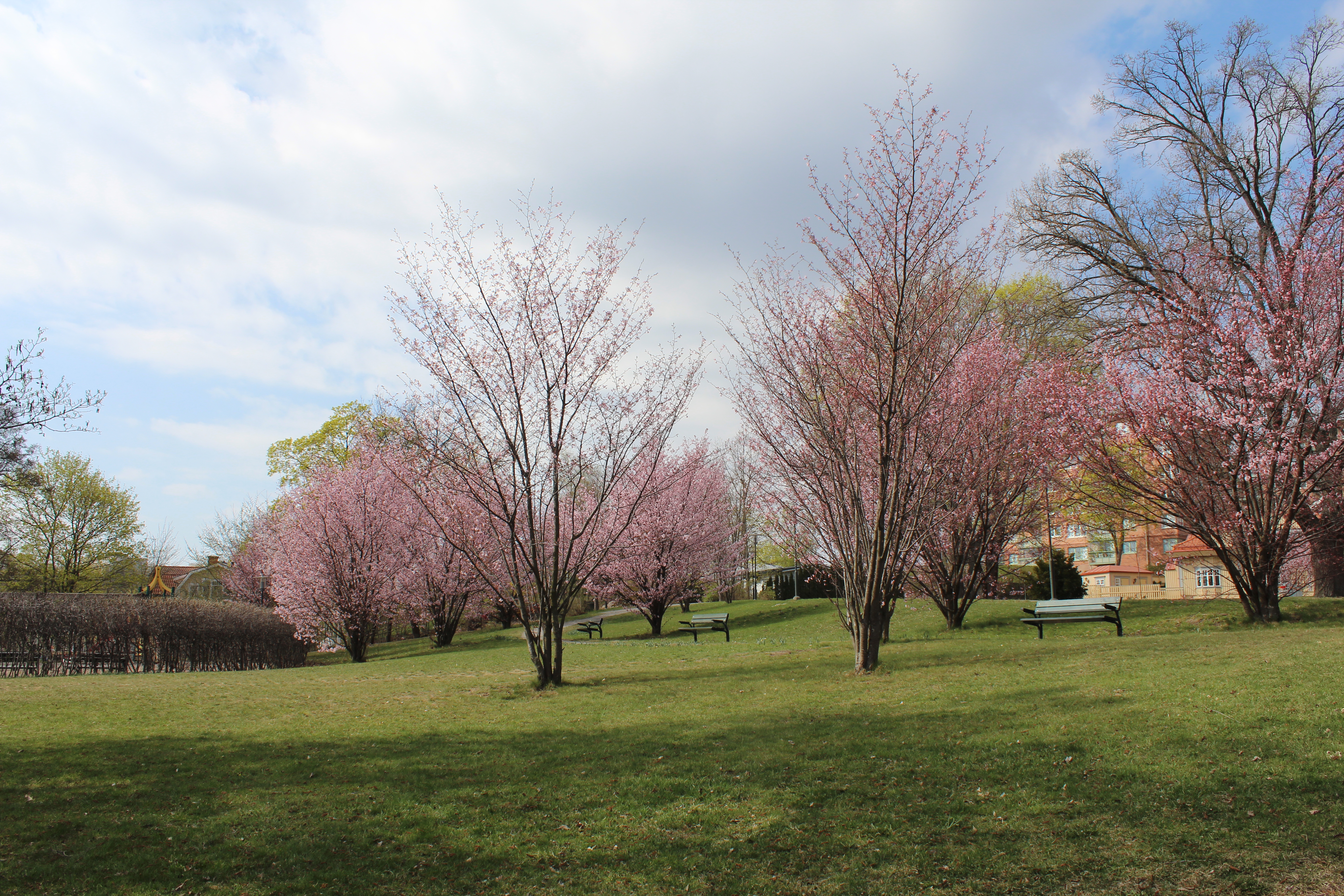 Under våren blommar det stora mängder påskliljor i parken som vi hoppas kommer ta sig även nästkommande år.