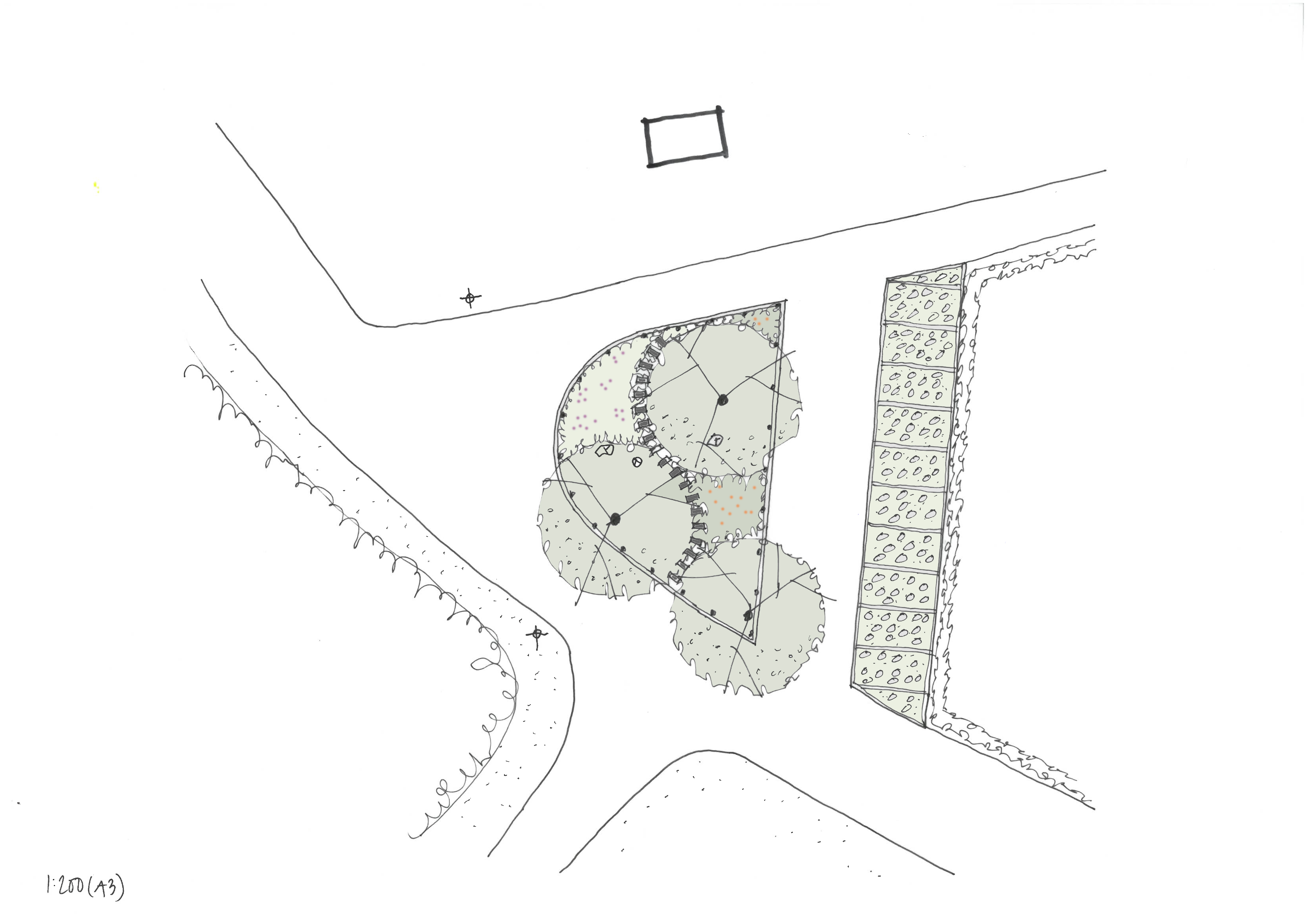 Under träden planteras växtbäddarna med buskar, perenner och lökväxter.