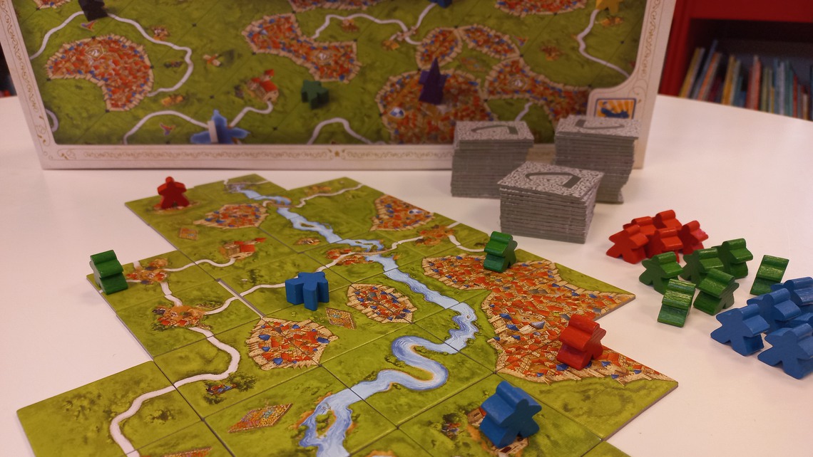 Carcassonne är ett enkel men klurigt strategispel. Vi går igenom reglerna och spelar ett par omgångar tillsammans. Alla är välkomna att spela, från 10 år.