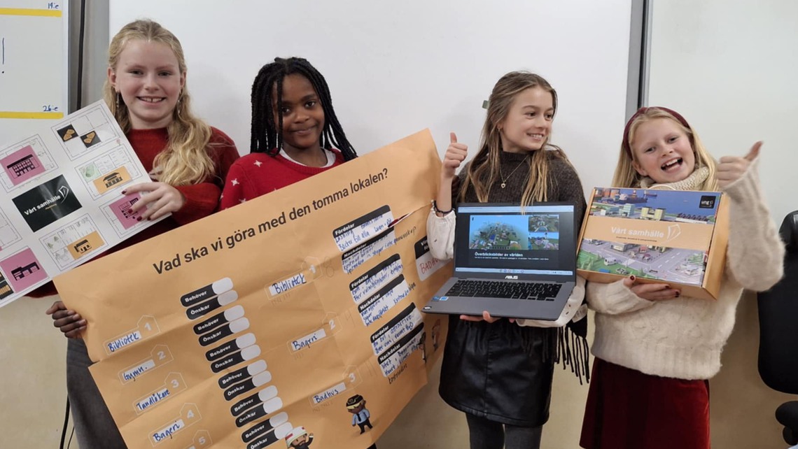 Under hösten har elever i årskurs 4-6 runt om i Sverige skissat och byggt fysiska prototyper av samhällen. Dessa har de sedan återskapat digitalt i Minecraft Education. Fem elever från klass 5B på Ekebyskolan har byggt upp ett fantastiskt samhälle, som nu har tagit dem hela vägen till final.
