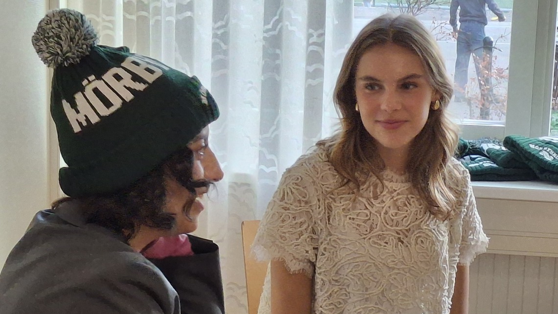 Med sig efter besöket fick utbildningsministern en grön mössa – en så kallad poof-ball hat – med texten Mörbyskolan på.