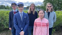 Från vänster: Jacob Brzezinski Ädelroth, Eric Liljedahl, Aron Helzel Golan, Leshi (Lucy) Zhang, Svante Brohagen