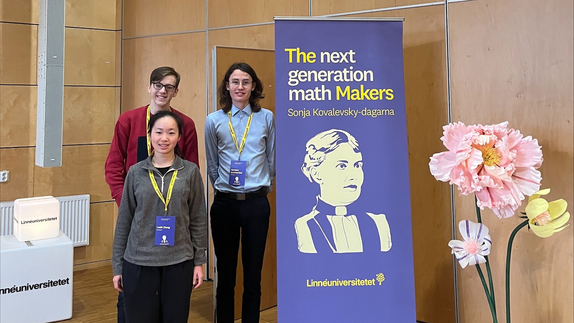 Hannes Selander (N23a), Leshi Zhang (N24a) och Hampus Sommerfeld (N23a) från spetsutbildningen i matematik deltog 7-8 november på Sonja Kovalevsky-dagarna 2025.