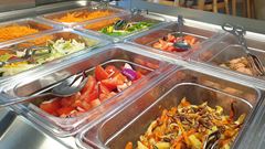 Varje dag serverar vi god och omväxlande mat, vanligen tillagad från grunden. Vår salladsbuffé består av olika sorters grönsaker, röror och sallader. En gång i veckan serverar vi hembakt mjukt bröd. Dagligen serveras en huvudrätt och en vegetarisk rätt.