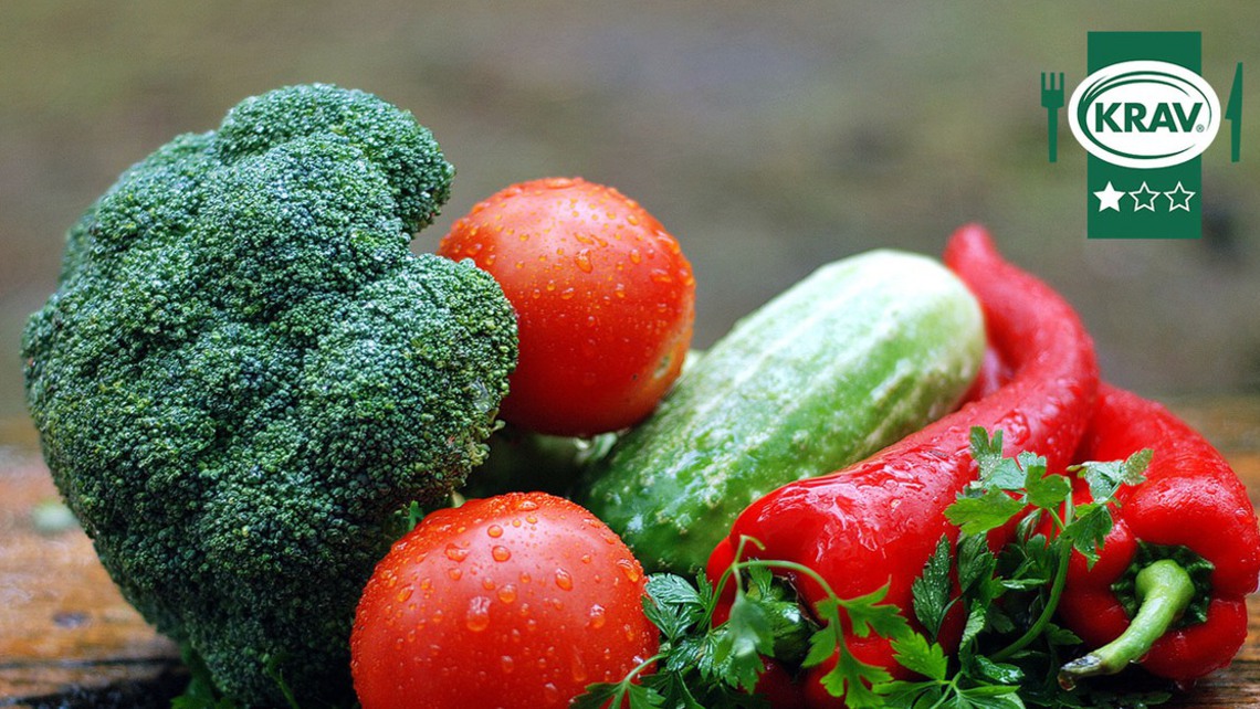 I våra kök är minst 25 procent av livsmedlen godkända enligt Kravs regler. Det betyder att de vegetabiliska livsmedlen är ekologiska, att fisken är hållbart fiskad och att köttet är ekologiskt och Krav-märkt. Minst 50 procent av de godkända livsmedlen är Krav-märkta. Vårt kök har därmed en stjärna enligt Kravs certifiering.