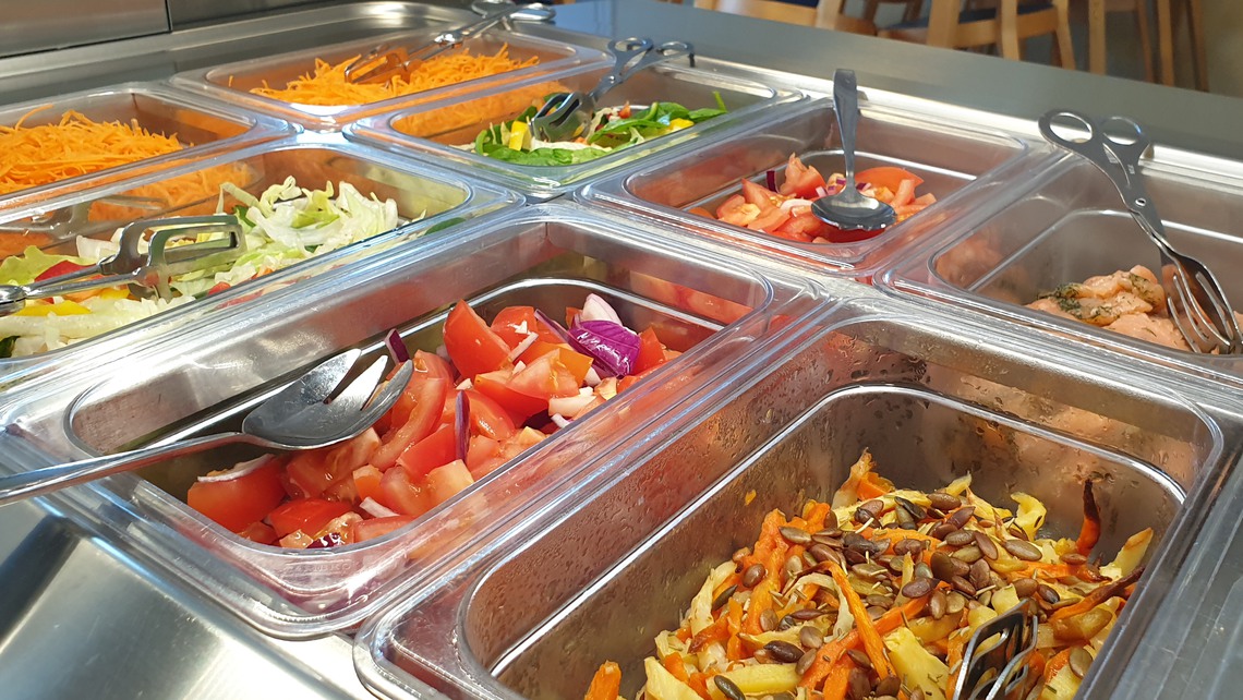Varje dag serverar vi god och omväxlande mat, vanligen tillagad från grunden. Vår salladsbuffé består av olika sorters grönsaker, röror och sallader. En gång i veckan serverar vi hembakt mjukt bröd. Dagligen serveras en huvudrätt och en vegetarisk rätt.